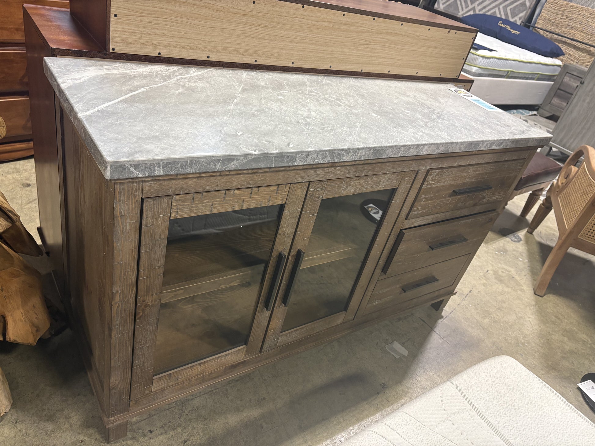 This rustic light wood sideboard is elevated with a faux marble top, adding elegance and sophistication to any room. Normally priced at $1,299, it's now on sale for $699. Upgrade your storage space with style.
