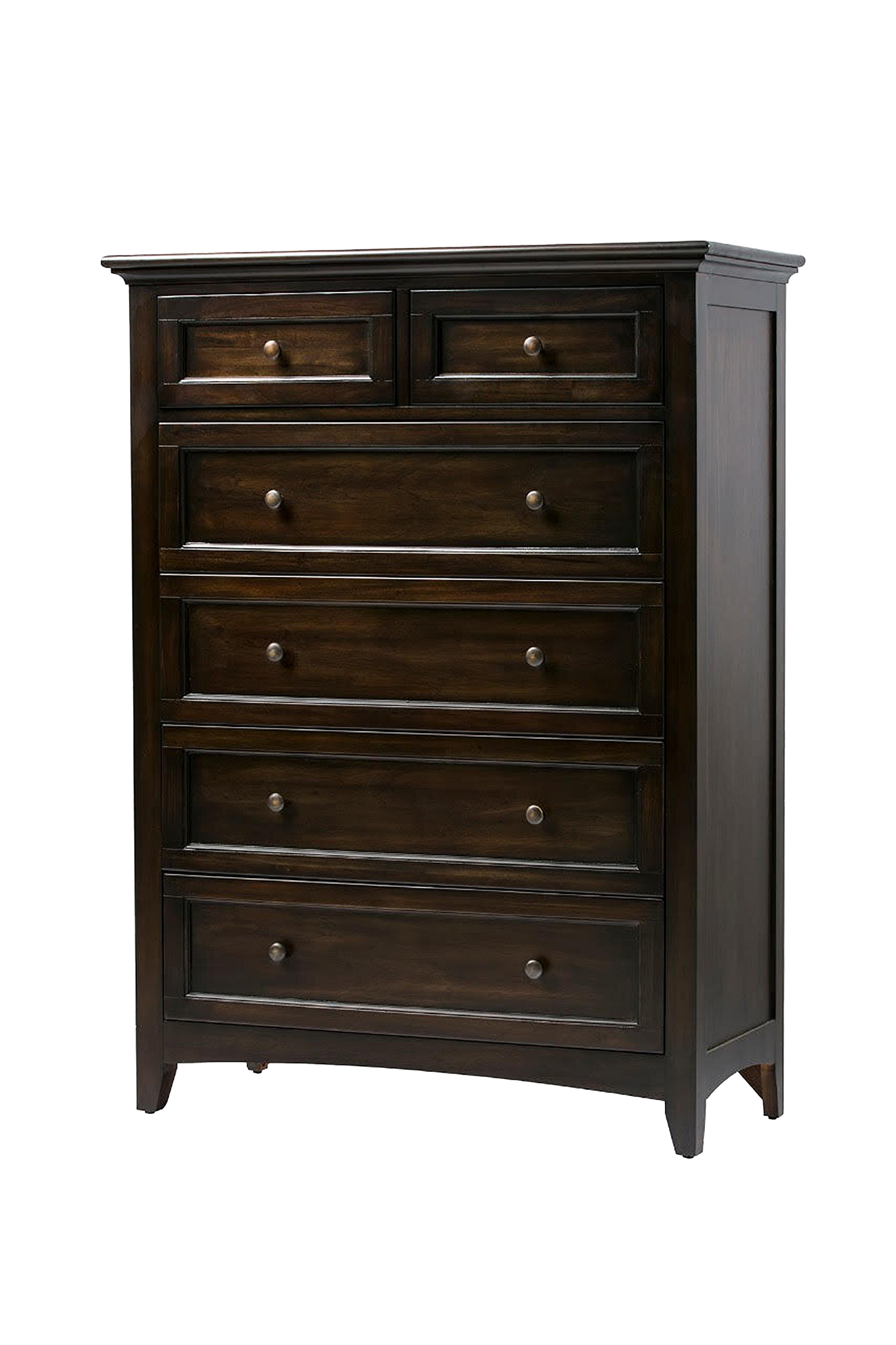 Maximize your bedroom storage without sacrificing style with the New Traditions Chest. This vertical storage solution features multiple deep drawers, perfect for keeping clothes, linens, and other essentials neatly organized. Its compact footprint makes it ideal for smaller spaces while still offering significant storage capacity. Constructed from solid wood and available in Black, Espresso, Gray, Java, Mahogany, and White, the New Traditions Chest combines practicality with timeless design. Clean lines and classic panel detailing create a sophisticated look that complements any bedroom.