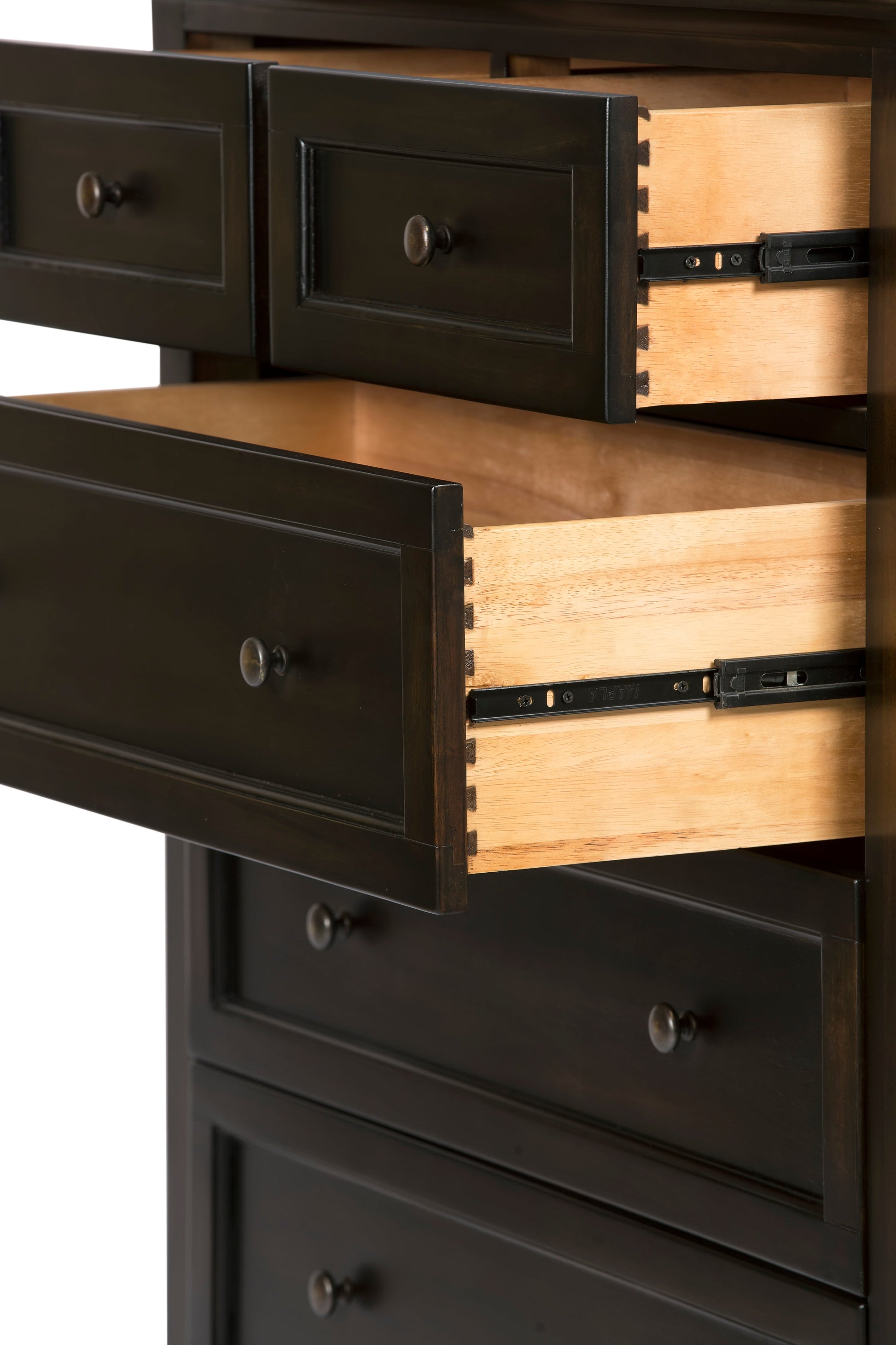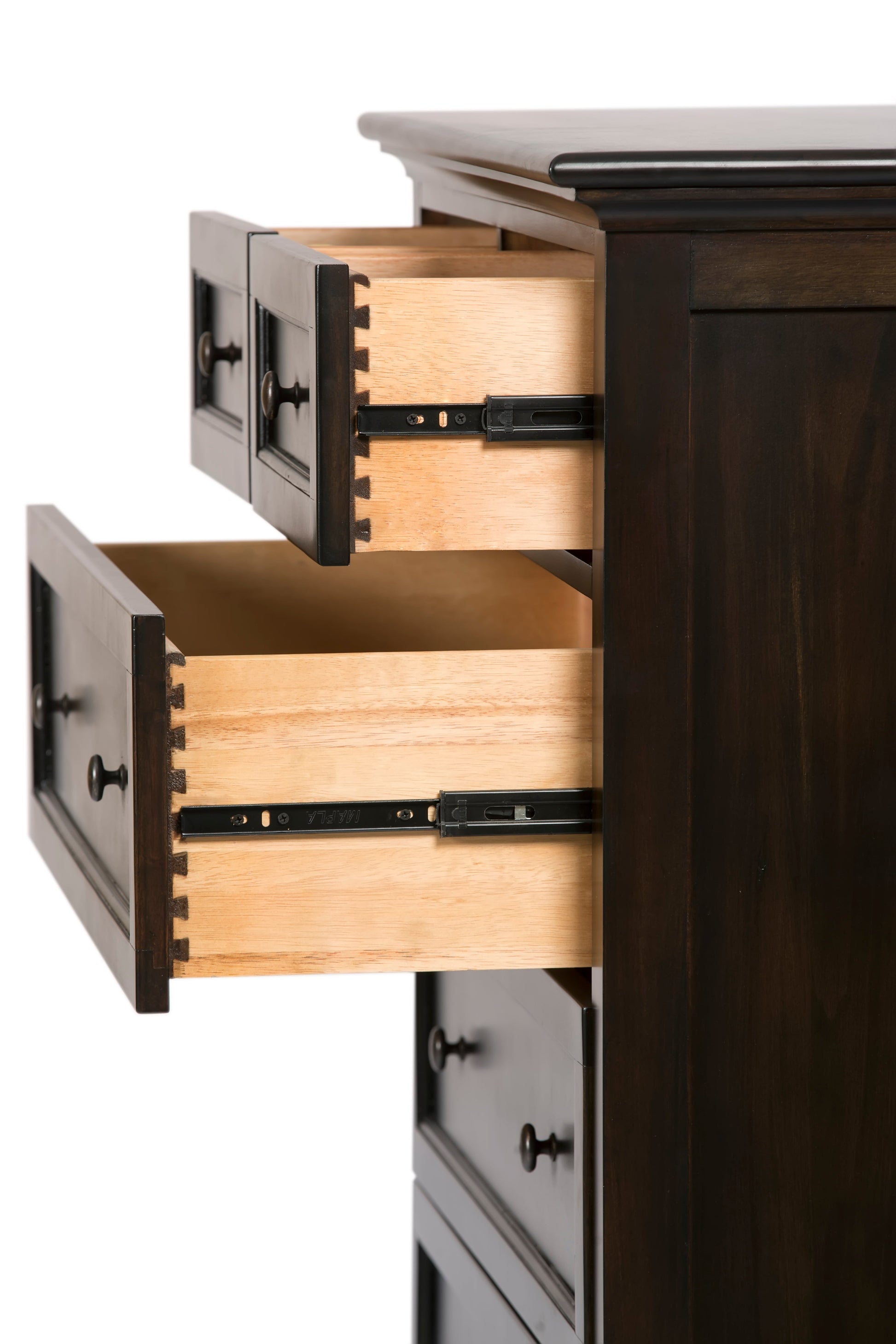 Maximize storage with the New Traditions Chest, a vertical solution featuring five dovetail drawers with smooth-gliding ball-bearing mechanisms. Ideal for smaller spaces, this chest offers ample room for clothing, linens, and accessories while maintaining a sophisticated look.
