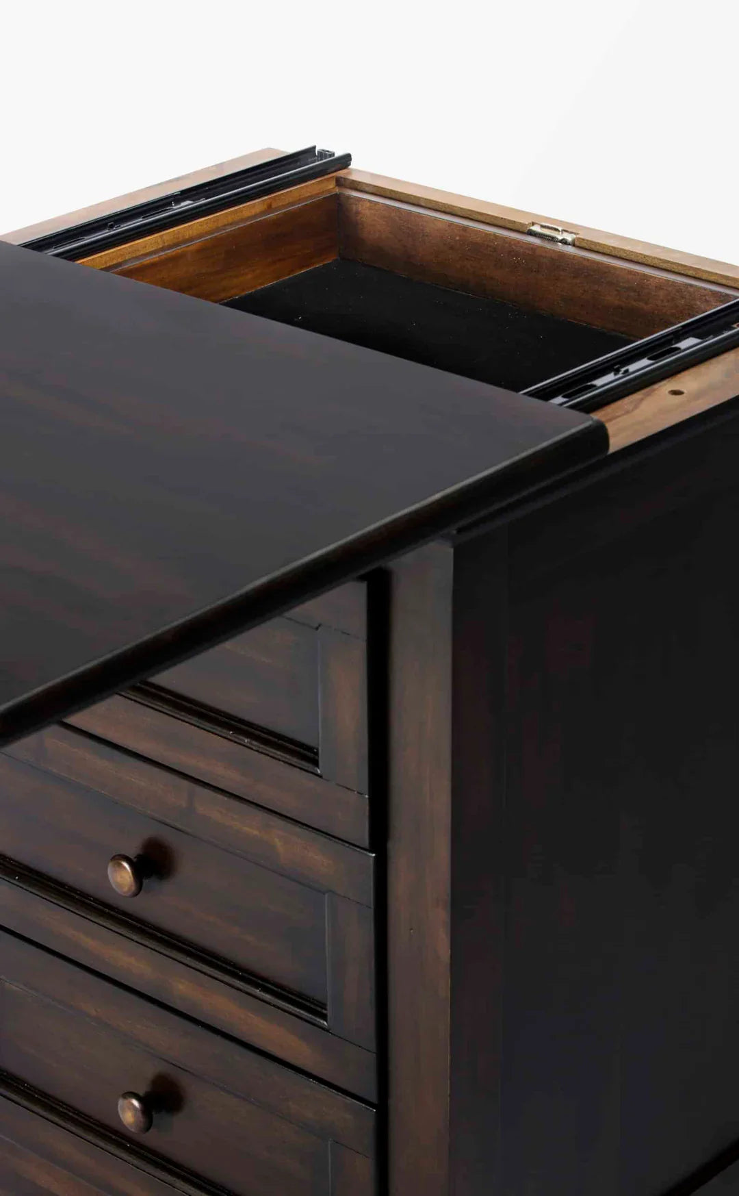 Bring timeless style and functionality to your bedroom with the New Traditions Collection Nightstand. Expertly crafted from solid wood, this nightstand offers both durability and elegance. With three spacious drawers and a lockable hidden storage compartment, it provides the perfect blend of security and practicality. Available in six versatile finishes, this nightstand complements any decor, whether modern or traditional.