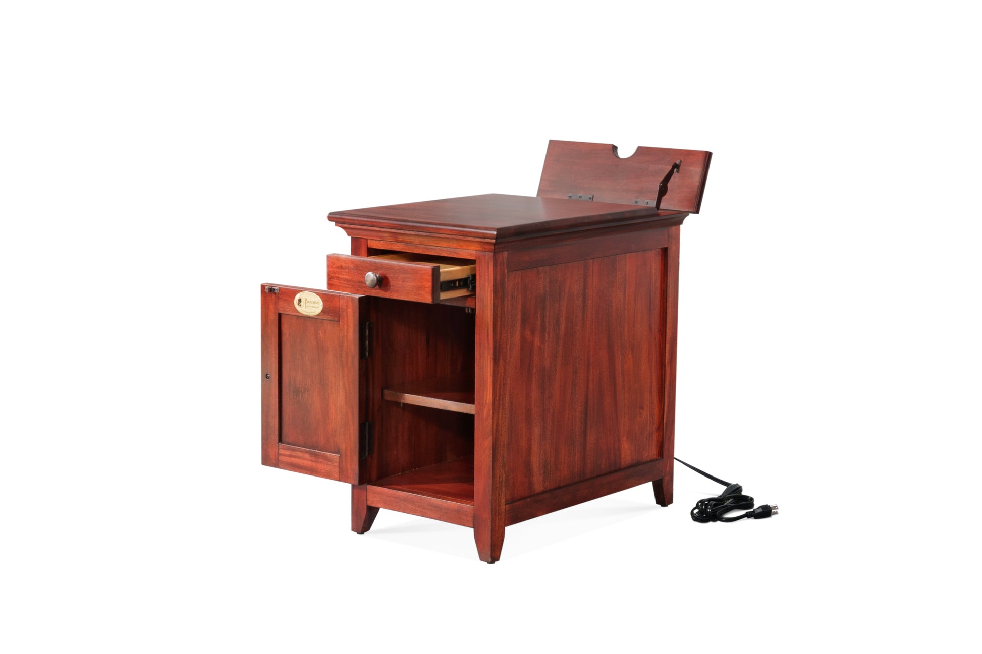 The New Traditions Power Chairside Table brings modern convenience and timeless style into one compact, functional design. Crafted from solid wood, this chairside table features a built-in hidden compartment with power outlets and USB ports, ensuring you can charge your devices without unsightly cords cluttering your space. Perfectly sized to sit beside your sofa, recliner, or bed, this table offers a smooth surface for drinks, lamps, or decor while keeping your technology close at hand. Available in Black, Espresso, Gray, Java, Mahogany, and White, the Power Chairside Table seamlessly blends beauty, practicality, and innovation to enhance any living space.