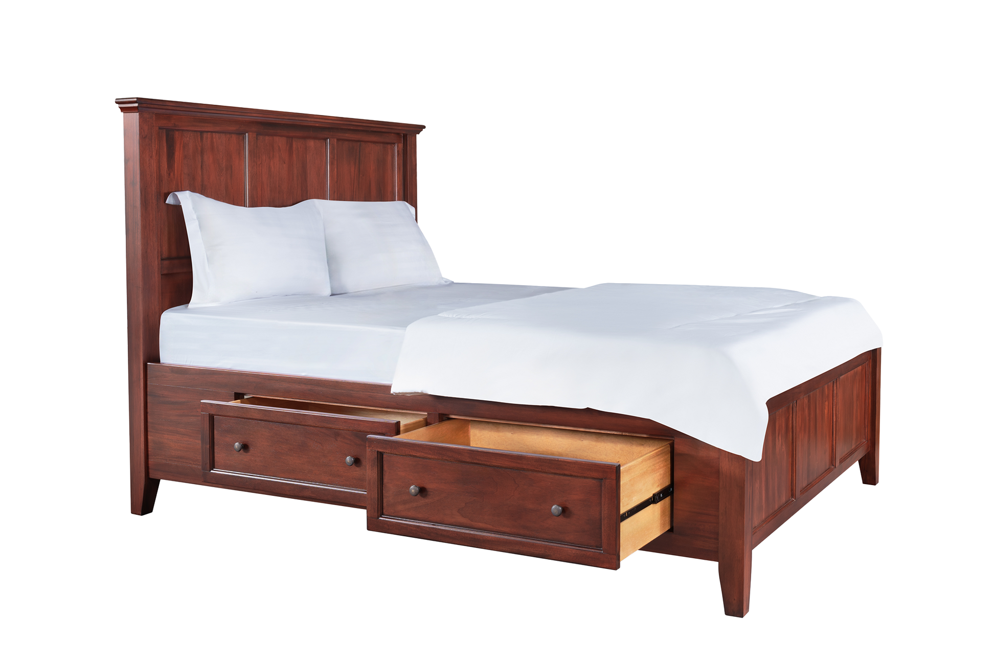 Perfect for maximizing storage in any space, the New Traditions bed features four generously sized underbed storage drawers, seamlessly integrated into the bed frame. These drawers glide smoothly on ball-bearing tracks, making them ideal for storing clothes, linens, or other essentials—keeping your bedroom clutter-free.