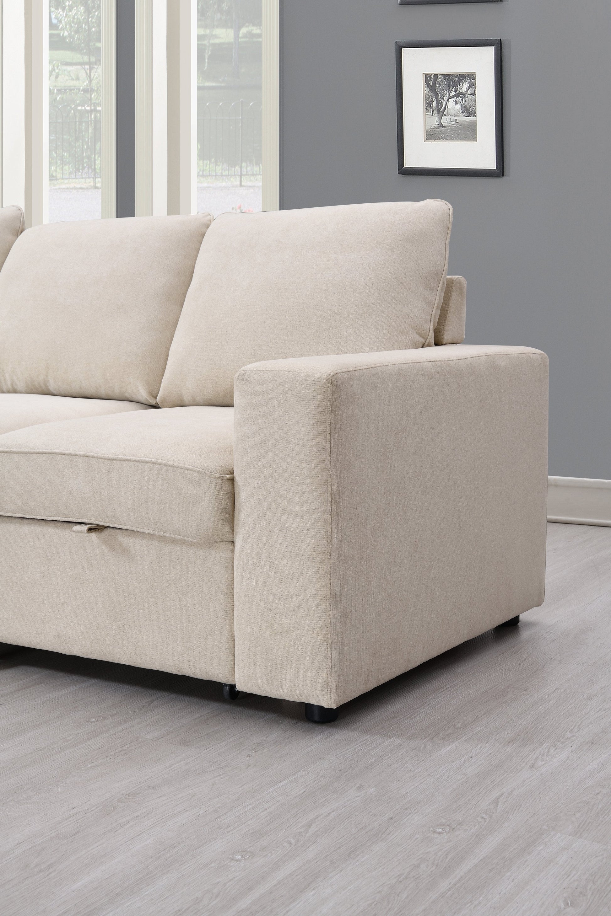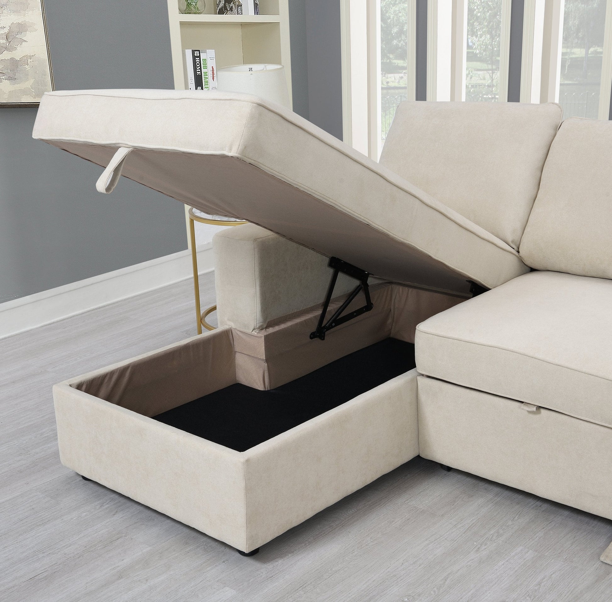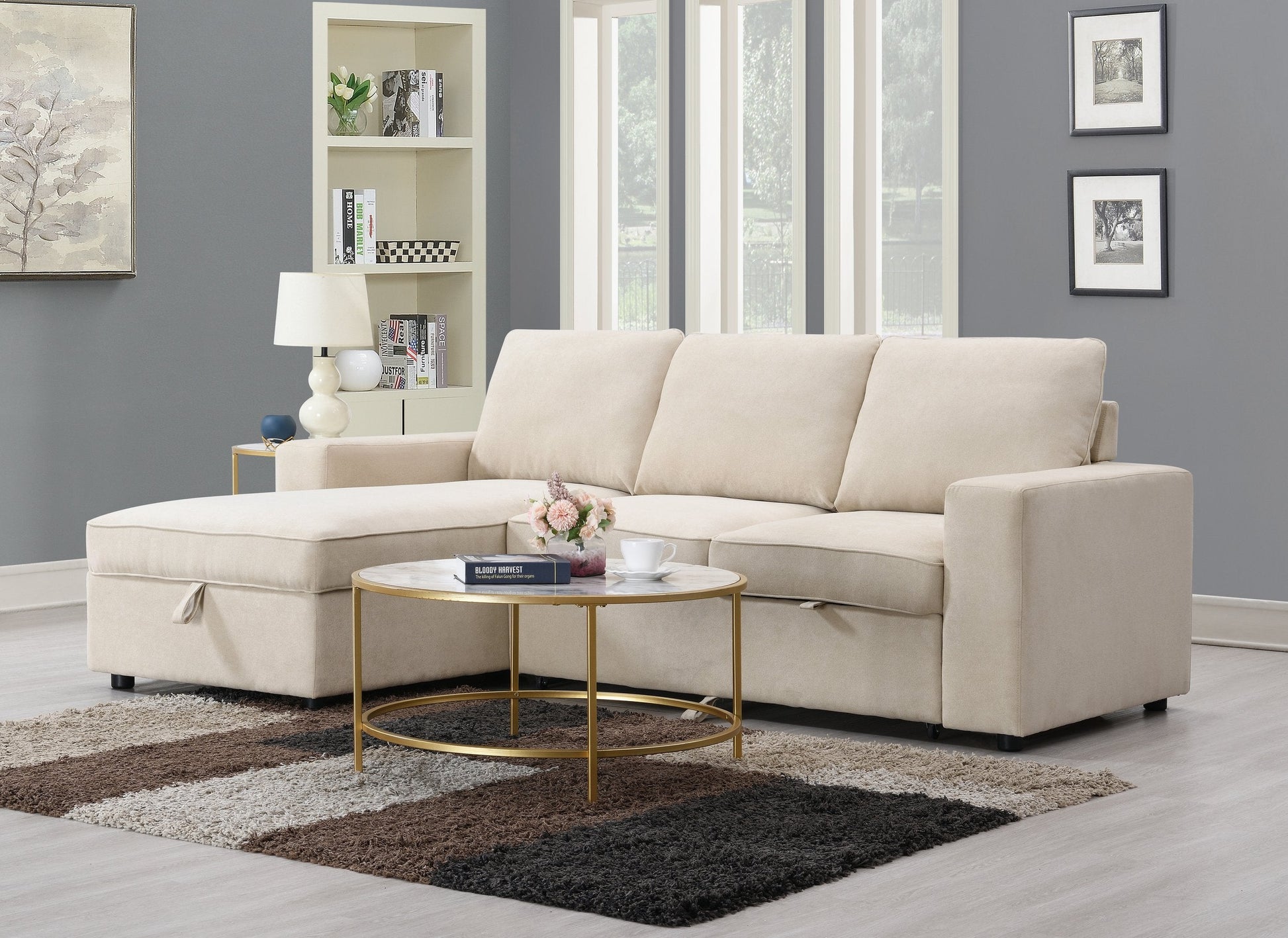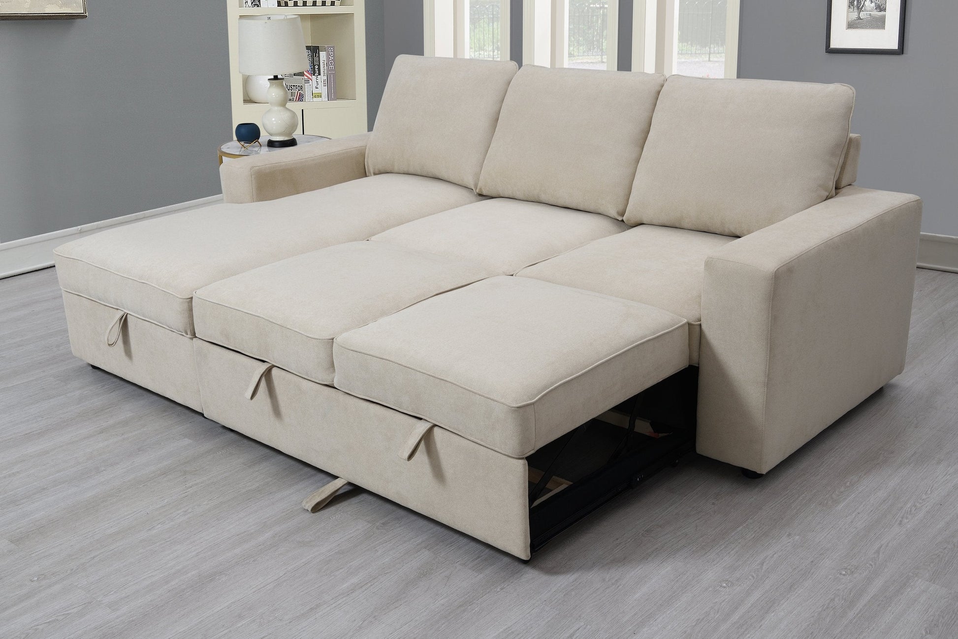 The Sleeper Sofa includes a pull-out ottoman and storage chaise.
